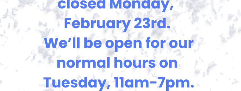 Closed due to the weather. See you Tuesday!
