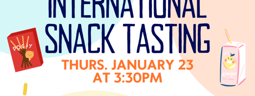 Join us for a trip around the world in food! We’ll try a tasty and interesting assortment of foods and give each a rating. No registration needed. This program is for youth in grades 5 and up.
