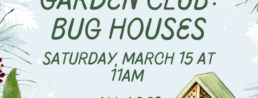 Make your own bug house to take home! All ages welcome. Registration is appreciated. Email cbeihl.hl@gmail.com to register.