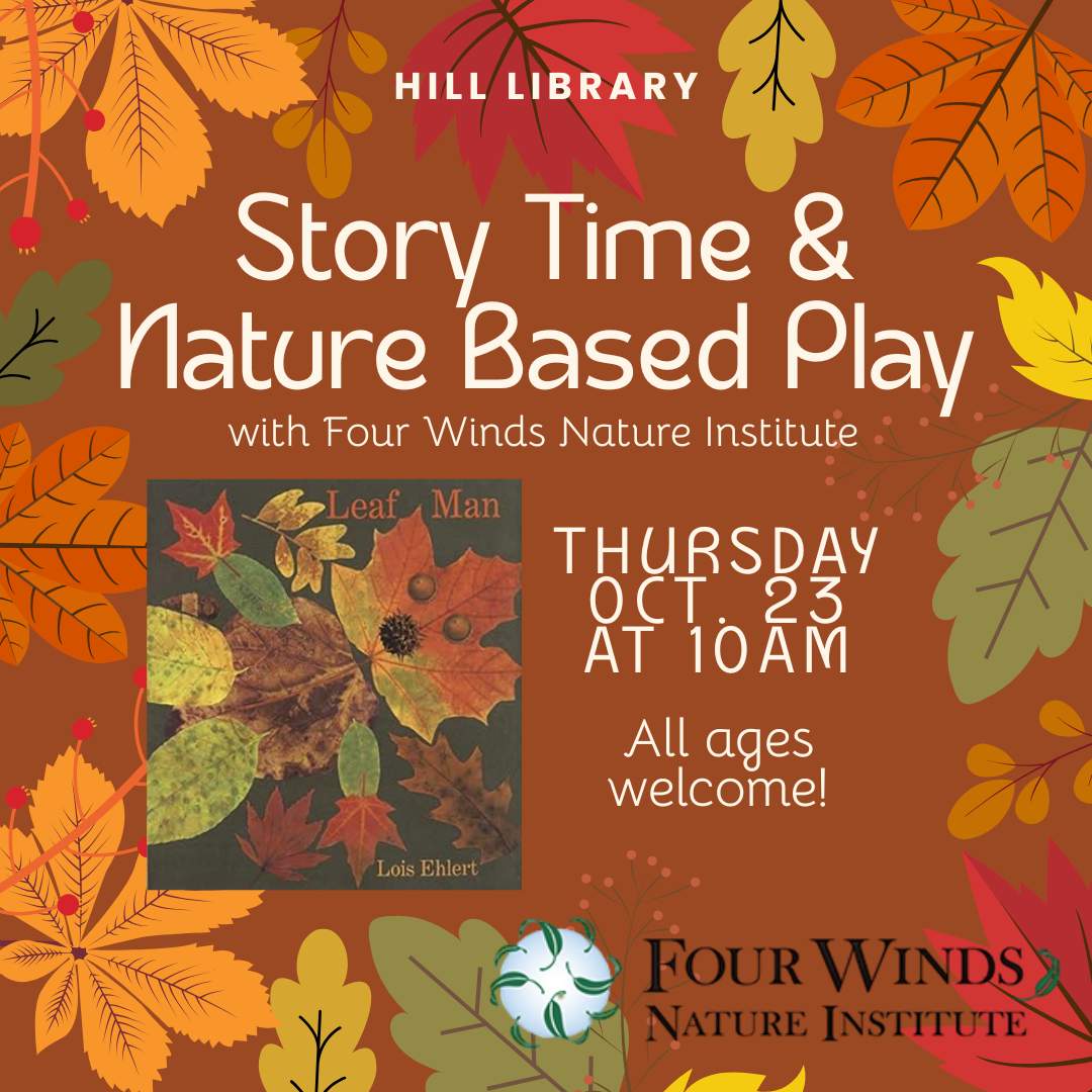 Educators from Four Winds Nature Institute will be joining us again for an outdoor story and play time about the Leaf Man by Lois Ehlert! No registration needed, all ages welcome.
