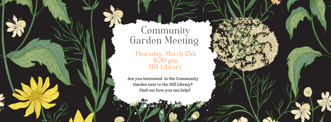 Do you like to garden? If you're interested in being a part of the Community Garden, join the meeting on Thursday, March 13 at 6:30 pm.