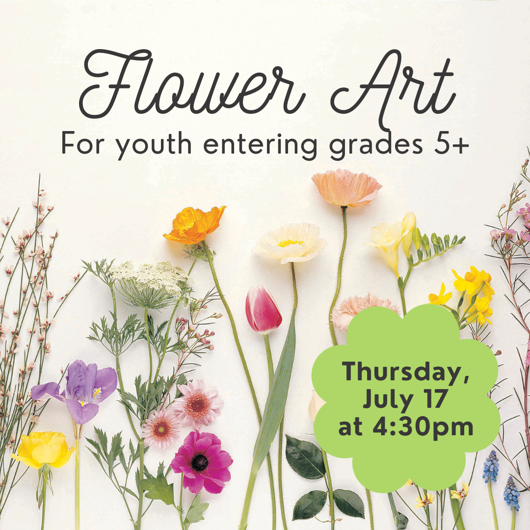 Make some beautiful art with dried flowers! This program is for youth entering grades 5+. No registration needed.