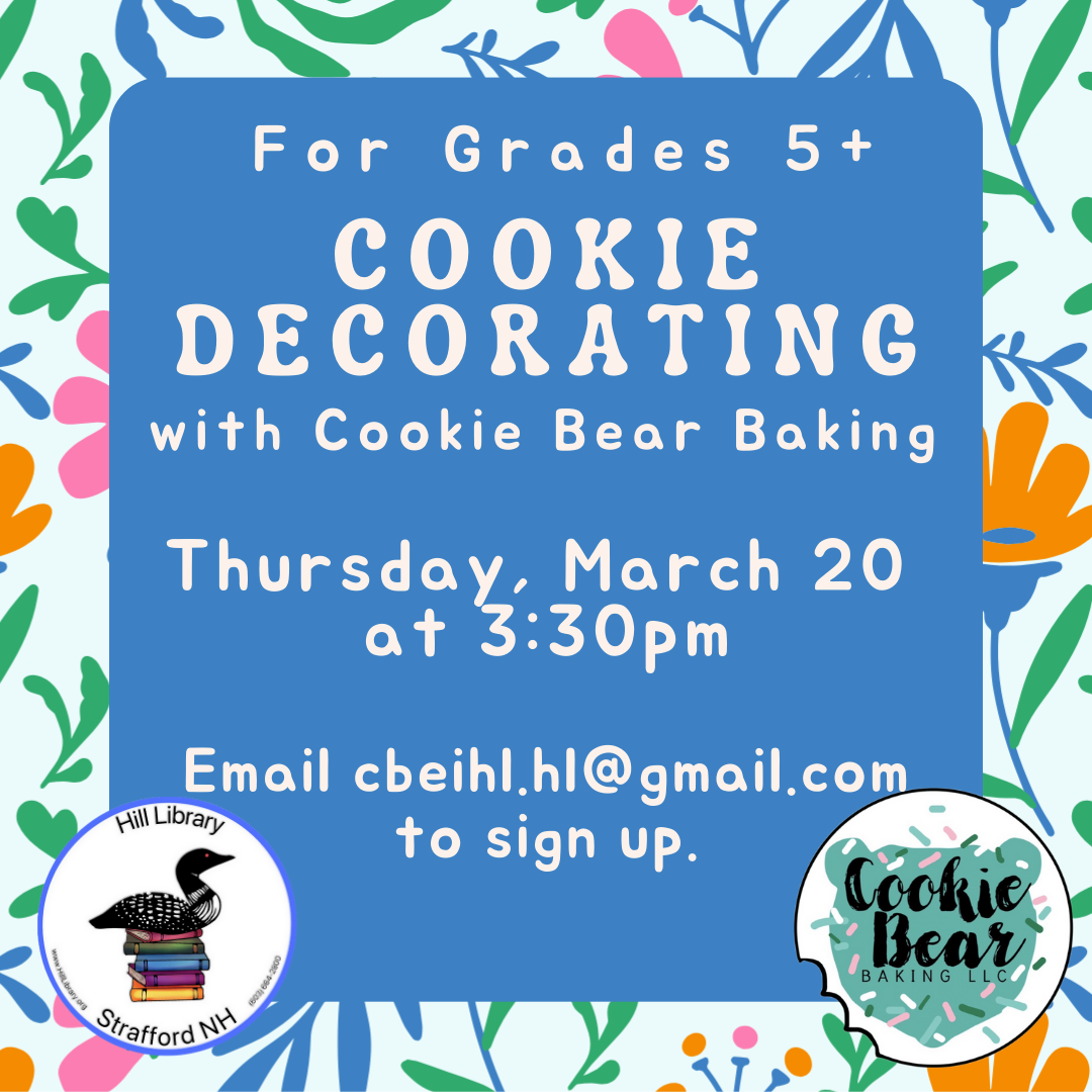 Decorate some delicious cookies with Leah from Cookie Bear Baking! Spaces are limited, so please register. Email cbeihl.hl@gmail.com. This program is open to youth in grade 5 and up.