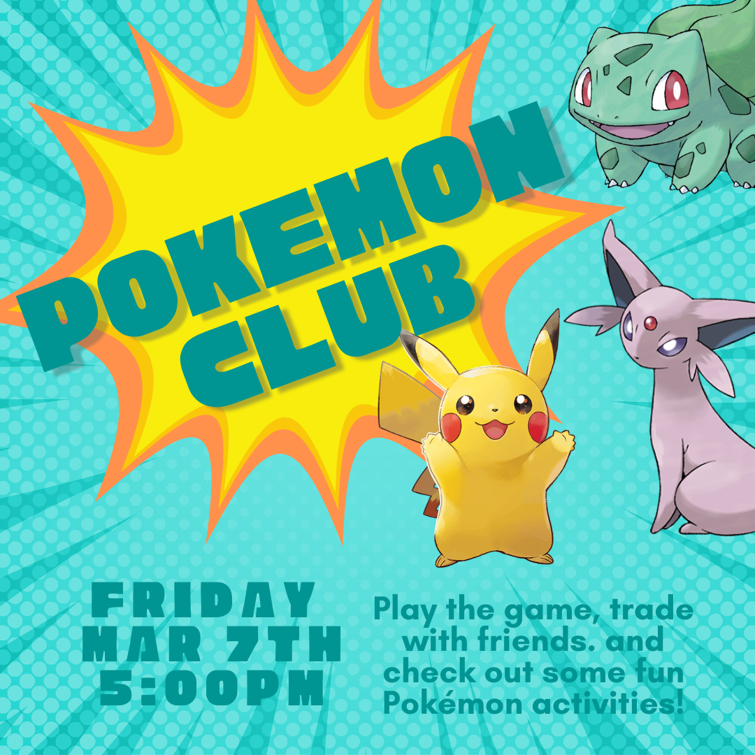 Come play, trade, and talk Pokémon! All ages welcome.