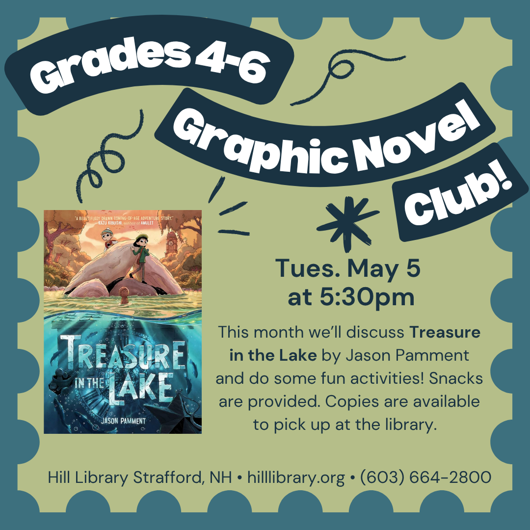 Join us for some book club fun! We’ll be discussing Treasure in the Lake by Jason Pamment. Copies are available at the library.