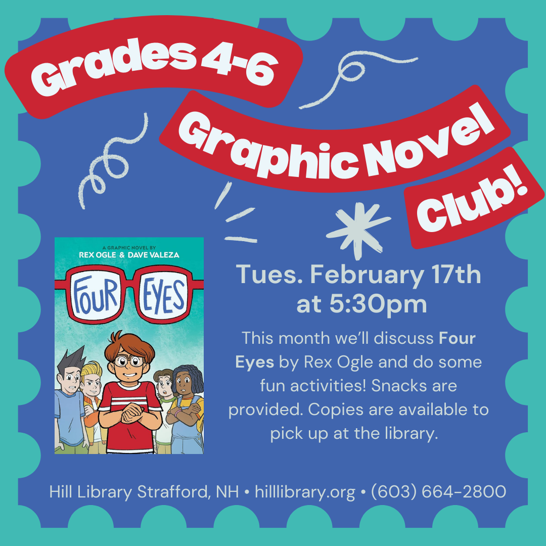 Join us for some book club fun! We’ll be discussing Four Eyes by Rex Ogle. Copies available at the library. |